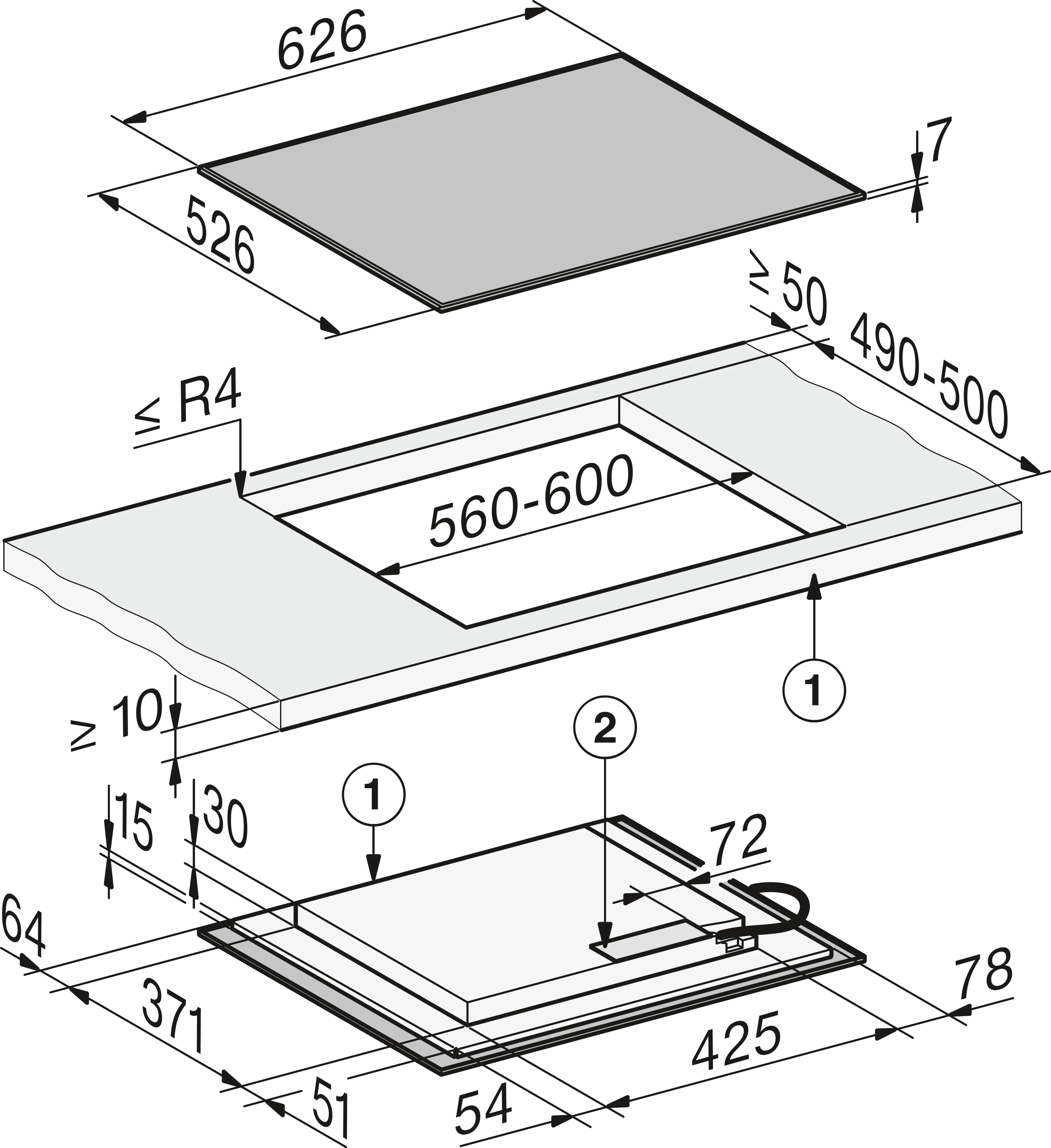 626 мм | Индивидуальные конфорки и зона приготовления PowerFlex